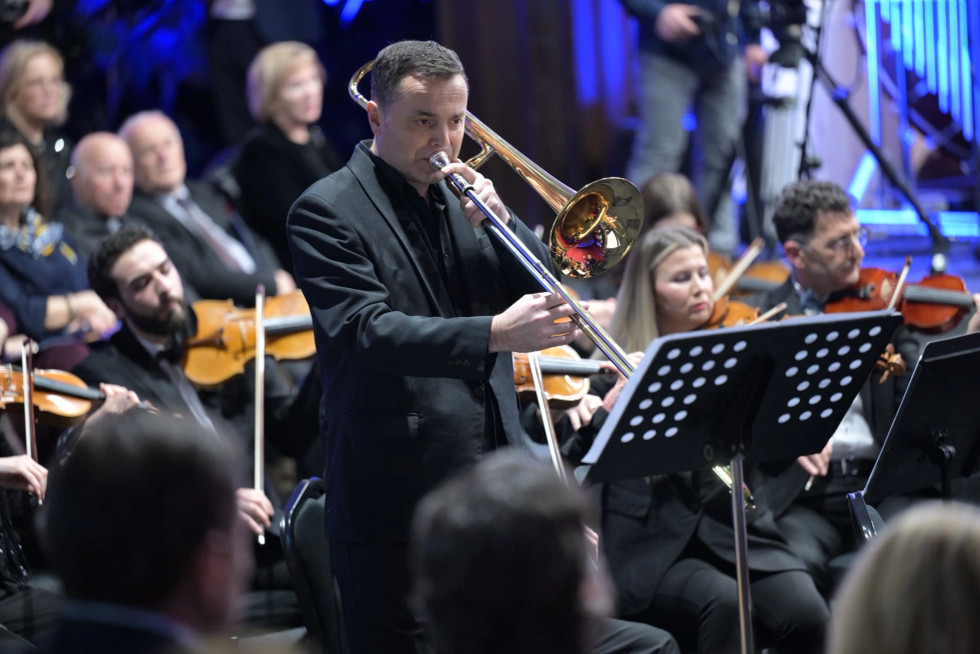 Tema dhe variacione për trombon dhe orkestër të Aleksandër Vezullit me solist Betim Krasniqin e kanë çuar programin nga veprat shqiptare që për bazë e kanë traditën. Dhe, Filharmonia e Kosovën në koncertet solemne sikurse u jep prioritet premierave. Kjo vepër me trombonin si instrument kryesor ka bërë që meloditë me tingull shqip të përçojnë te publiku frymë identitare.