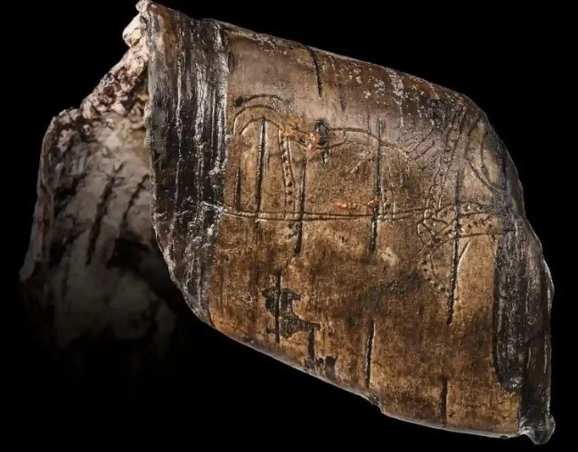 Fragment lëvoreje me dekorime të gdhendura, ku dallohet një kalë i stilizuar. Paraqitje të tilla figurative janë jashtëzakonisht të rralla në artin e hershëm kelt të shekullit VII dhe fillimit të shekullit VI para erës sonë