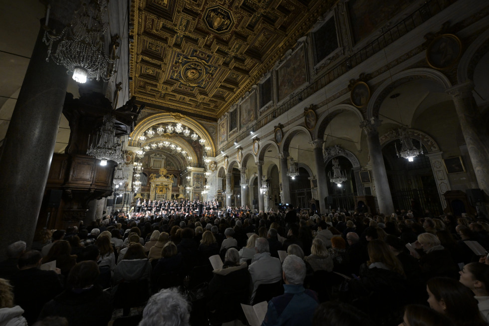 Krejt kanë ngjitur mbi 120 shkallë për të hyrë në kishë. Midis tyre, pesë meshtarë të Vatikanit, përfshirë edhe kardinalë. Ambasadorë të akredituar të asaj që është Selia e Shenjtë e mysafirë të tjerë që kanë përbërë publikun me rreth 700 veta, të dielën mbrëma kanë mbushur bazilikën Santa Maria in Aracoeli në Romë. Ndërtesa që zë fill në shekullin e gjashtë dhe kufizohet me atë që njihet si Monumenti i Vittorio Emanuele II – alamet pallati mbretëror – u ka bërë strehë krejt mysafirëve pasi qe nikoqire e Filharmonisë së Kosovës. Të pranishmit përballë muzikantëve nga Kosova, qysh pa nisur koncerti, kanë shfletuar programin, vargjet e solistëve e të korit. E kur koncertmjeshtri Visar Kuçi ka hyrë në sallë dhe ka dhënë sinjal për akordim, sytë janë ngulitur tek Orkestra. Në këtë moment ka filluar “shfaqja”. Publiku i pranishëm me përbërje rreth 95 për qind italianë, kësaj radhe ka pasur përballë artistët e shtetit më të ri në Evropë.