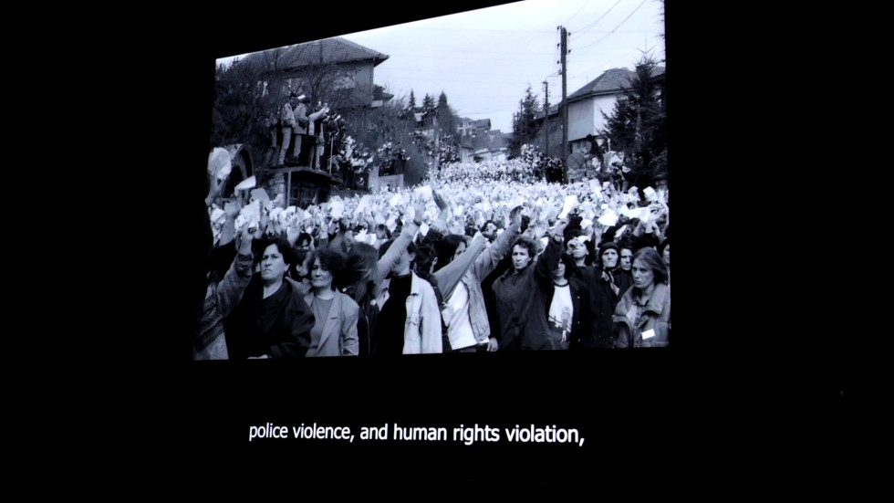 Një prej imazheve të fuqishme është një fotografi që shfaq gratë duke parakaluar në demonstrata përpara policisë serbe tek i vështrojnë ato me përbuzje e paragjykim. Në kohë lufte ato ngrinin zë kundër shtypjes etnike, pas luftës ato u bënë zëra për barazi e drejtësi.