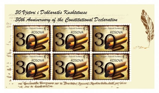 Me rastin e shënimit të 30 vjetorit të Deklaratës Kushtetuese, Filatelia e Kosovës ka vënë në qarkullim emisionin e ri të pullës postare: “30 Vjetori i Deklaratës Kushtetuese”.