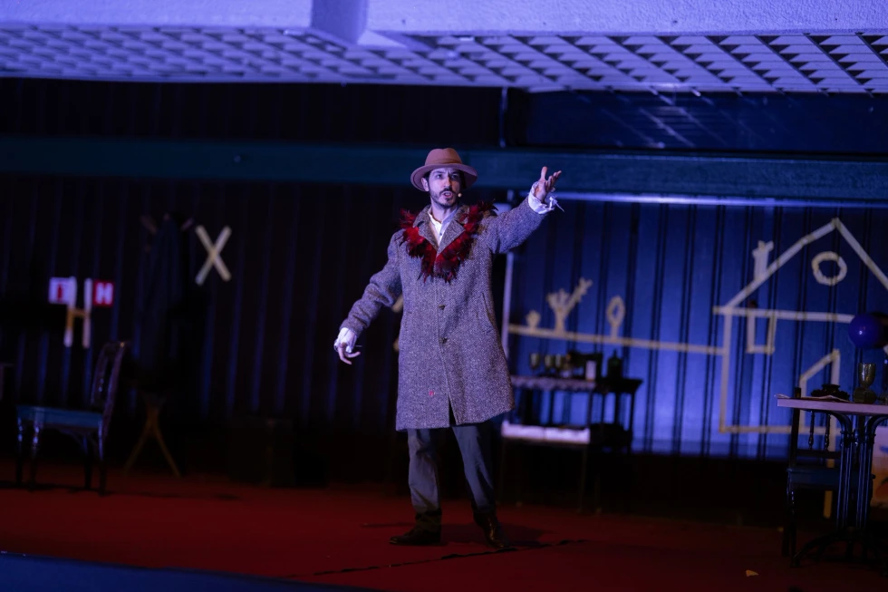 Elementet skenike janë minimale, një stol i thjeshtë, një derë e hapur, drita të ngjyrave të ngrohta që ndryshojnë sipas emocioneve të protagonistes, duke ia dhënë publikut ndjesinë se çdo gjë mund të ndodhë, që nga dashuria e pafat deri te rreziku i paparashikueshëm.