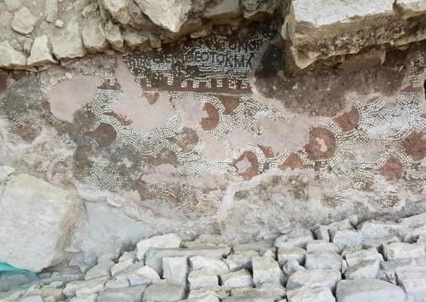 Mozaiku i dytë, i gjetur në qytetin e poshtëm, përmban motive gjeometrike dhe tekst greqisht mbi një sfond të bardhë. Një fjalë është ruajtur qartë: Theotokos, që do të thotë “Hyjlindësja” ose “Nëna e Zotit”. Mbishkrimi që përmend termin “Theotokos” është një gjurmë e rëndësishme për datimin e mozaikut. Ky titull mori një vend qendror në teologjinë e krishterë pas Koncilit të Efesit në vitin 431.