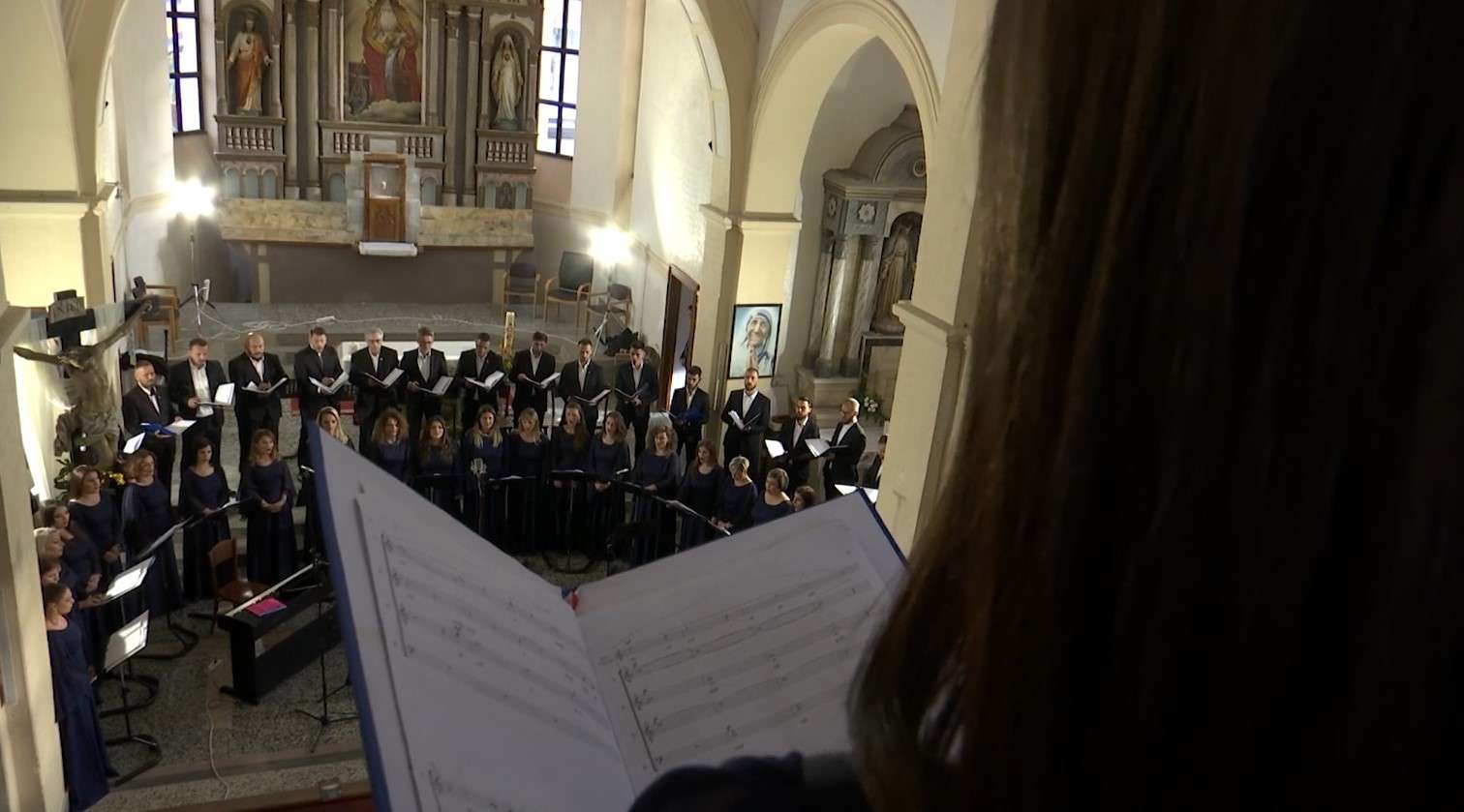 Publiku “pushtoi” ulëset, solistët e Korit të Filharmonisë së Kosovës zunë vendet e tyre dhe kisha “Shën Katarina” filloi të kumbojë.