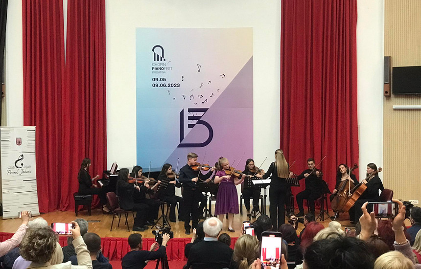 Për t’i dhënë hijeshi, në fund të koncertit, bashkë më orkestrën performoi edhe Kori i shkollës, nën dirigjimin e Lirjona Sylejmanit. Ishte një numër tejet i madh i nxënësve aq sa për pak arrinte t’i nxinte salla e vogël e Amfiteatrit të Bibliotekës Universitare. Interpretimi i tyre qe në harmoni me njëri-tjetrin e bukuria vokale ka shpërfaqur potencialin e zërave të rinj tok me instrumentistët.