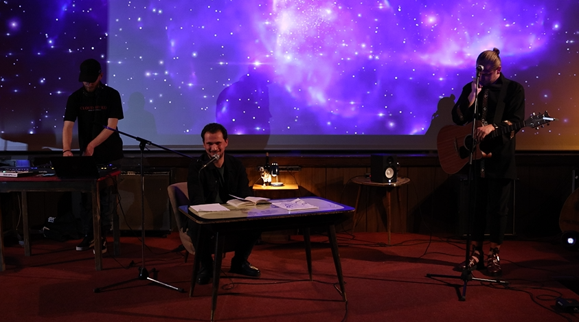 E nisi me kitarë performancën e këngëve të tij, pjesë të albumit që ende nuk ka dalë, përderisa muzikën shpesh e ndalte leximi i poezive të librit të parë që artistin e sjell në dimensionin e autorit që pëlqen të rrëfejë midis vargut dhe poezisë. Kjo mënyrë e sjell atë si një artisti shumëdimensional. Përderisa vargu i tij fliste shumë teksa interpretohej nga aktori Ermal Sadiku, melodia që vinte nga ai rrëfente më tej rreth natyrës së artistit.
