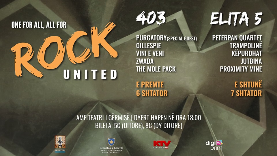 Më 6 dhe 7 shtator 2019 do të mbahet Festivali Rock United në Amfiteatrin e Pishinës së Gërmisë, bëhet e ditur përmes një komunikate për media.