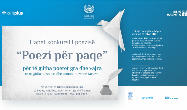 Në shënim të Ditës Ndërkombëtare të Paqes, KultPlus, mbështetur nga UN Women ka shpallur të hapur konkursin “Poezi për Paqe” , ndërsa në adresën e tij çdo ditë ka arrritur një numër i madh i poezive.