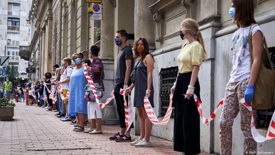 Për më pak se dy javë, shiriti me vija të kuqe e të bardha i varur nëpër dritat e rrugëve, nëpër timonë biçikletash dhe në hyrje të shtëpive, është bërë një simbol i rezistencës. Këto ditë gjendet kudo nëpër kryeqytetin e Hungarisë. Është lloj i ngjitësit që nga 1 shtatori ka bllokuar hyrjen për në Universitetin e njohur të Arteve, Teatrit dhe Filmit (SZFE) në Budapest, shkruan "Deutsche Welle".
