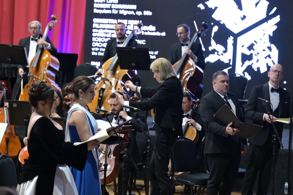 Filharmonia e Kosovës në bashkëpunim me Operën, kanë sjellë koncertin unik i cili nëpërmjet “Requiem für Mignon” nga Robert Schumann të Periudhës Romantike, ka kaluar te bashkëkohorja me “Ballin lart” të Valton Beqirit deri te përmbyllja monumentale me “Stabat Mater” e Antonín Dvořák. Koncerti në dirigjimin e Marion Wood është njëherësh edhe uverturë e rrugëtimit historik të Filharmonisë me debutimin në Berlin
