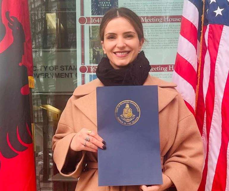 “Në vitin 2015 kur unë dhe familja ime erdhëm për të jetuar në Amerikë, qyteti i Stamfordit në Connecticut, u bë shtëpia jonë larg shtëpisë! Së bashku me vajzën time, ecja çdo ditë në rrugët e qendrës së qytetit - Mill River Park, Biblioteka Ferguson dhe këndi i lojërave Cove Beach - ishin ndër destinacionet tona të preferuara. Çdo ditë duke shëtitur lagjet dhe duke mësuar gjëra të reja dhe ndërsa më mungonte familja dhe vendlindja ime, Stamford arriti të më sillte gëzim dhe siguri në jetë. Edhe pse ne tashmë jetojmë në një tjetër qytet,Stamfordi ende mbetet një shtëpi e dytë për ne! As në një milion vjet atëherë, nuk kam guxuar të ëndërroj se gjashtë vjet më vonë, në vitin 2021, ky qytet do të më nderojë me mirënjohjen e kryetarit të komunës për punën në ‘Hive’ - kandidatin e Kosovës për Oscar 2022 dhe dashtë Zoti të nominuarin”, ka shkruar ajo.