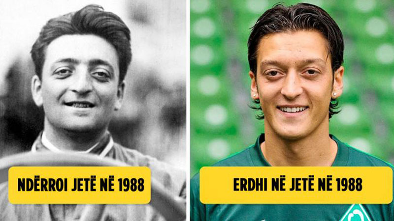 Enzo Ferrari, i cili themeloi kompaninë Ferrari, vdiq në vitin 1988. Rreth një muaj më vonë, futbollisti Mesut Özil lindi. Duke parë portretet e tyre, nuk keni faj nëse mendoni nëse ata janë vëllezër binjakë. A është ky një rast rimishërimi?