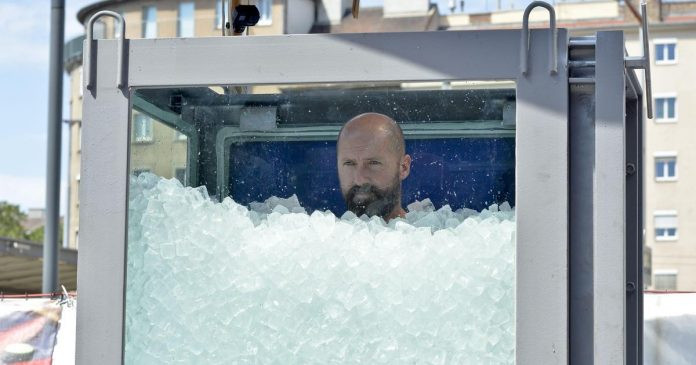 “Koeberl kaloi saktësisht dy orë, tetë minuta dhe 47 sekonda i mbuluar deri në qafë me akull, ndërkohë që kishte veshur vetëm kostum banje”, saktësoi APA.
