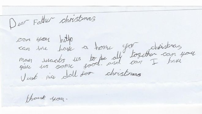“I dashur babadimër. A mund të më ndihmosh. A mund të kemi një shtëpi për Krishtlindje. Mami ka dëshirë të jemi të gjithë bashkë. A mund të kemi edhe pak ushqim, dhe a mund të kem unë edhe një kukull të bukur për Krishtlindje? Faleminderit”, kishte shkruar 7 vjeçarja, transmeton Koha.net.