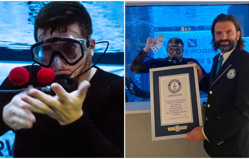 Martin Rees nga Britania e Madhe ka thyer rekordin Guinness për më së shumti truqe magjie të performuara nën ujë. Ai në kohë prej tre minutash kreu 20 truqe.