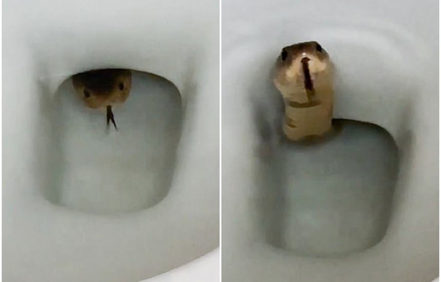 Një burrë nga Kamboxhia u tmerrua kur pa një gjarpër kobra në tualetin e tij.