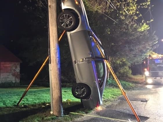 Siç shihet edhe në fotot e mëposhtme makina ka përfunduar e përplasur në pozicion vertikal me një shtyllë elektrike.