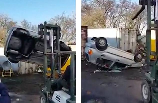 Një banor shihet në këtë video duke shkatërruar veturën e një hajni.