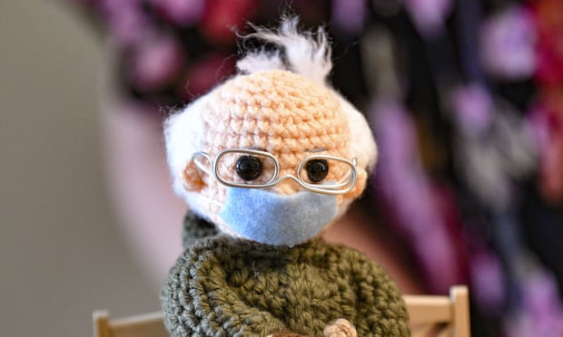 Pas ditës së inaugurimit fotoja e Sandersit ku ai ishte ulur në një karrige, me distancë nga të tjerët, i përkulur nga i ftohti e i veshur me dorashka të thurura, Tobey King në Teksas filloi të punonte me grep. Shitet për 20,300 dollarë.