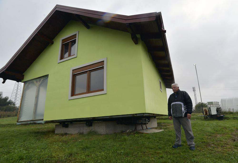 Shtëpia në Srbac është projektuar dhe ndërtuar nga 72-vjeçari Vojin Kusiq. Me një fasadë të gjelbër dhe çati të kuqe metalike, mund të rrotullohet duke bërë një rreth të plotë për të kënaqur dëshirat e ndryshueshme të gruas së tij Ljubica për atë që ajo do të donte të shihte kur të shikonte nga dritaret e saj.