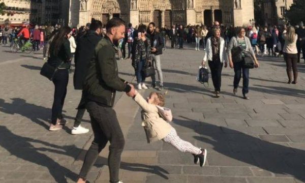 Fotografia e babait që luan me vajzën e saj, u shkrep disa momente para se katedralja të digjej, dhe ngjalli reagime të mëdha të njerëzve në Twitter, që u përpjekën ta gjenin, dhe rezultoi me sukses.
