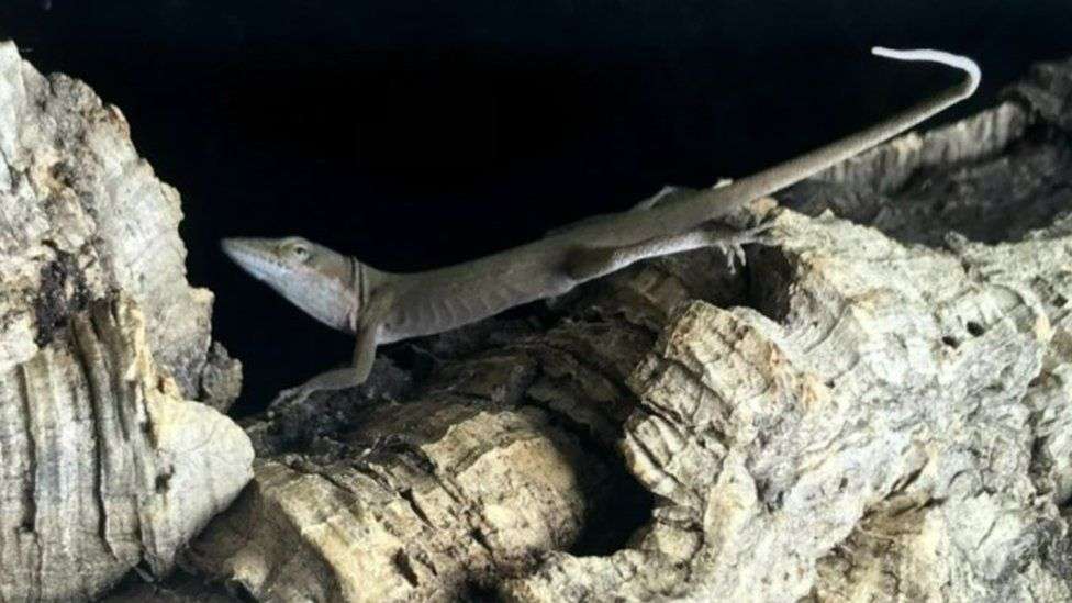 Një hardhucë është shpëtuar pasi u vendos në një valixhe dhe udhëtoi 4500 milje nga Florida në gjirin e Whitley.