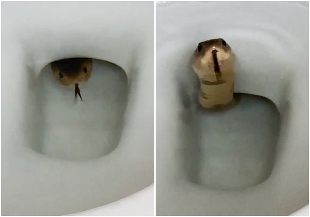 Një burrë nga Kamboxhia u tmerrua kur pa një gjarpër kobra në tualetin e tij.