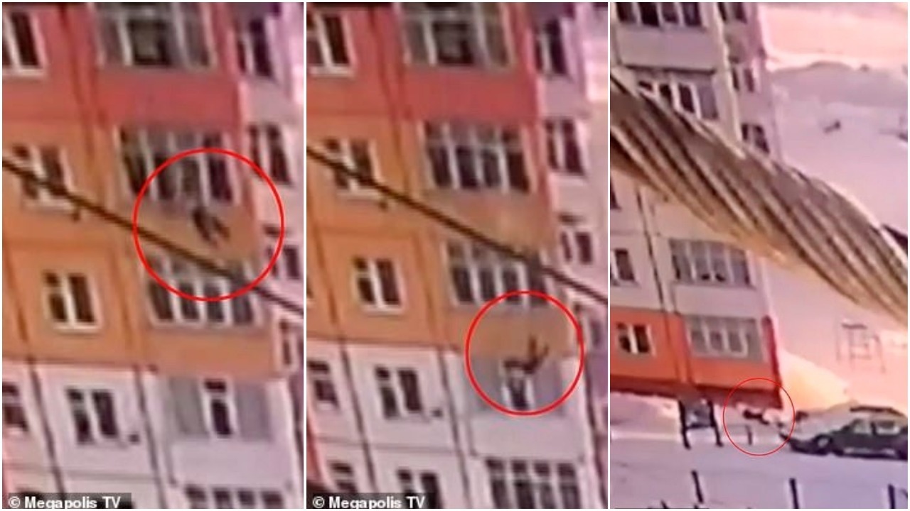 Një video dramatike është publikuar në rrjetet sociale, ku një grua në Rusi bie nga pallati, nga një lartësi më shumë se 27 metra dhe më pas ngrihet dhe vijon te ecë në rrugë sikur të mos kishte ndodhur asgjë.