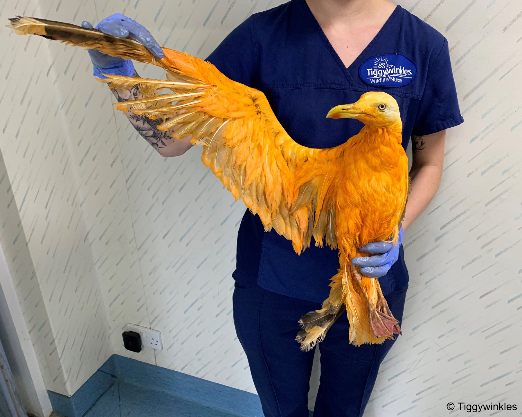 Një zog me ngjyrë portokalli është shpëtuar nga spitali i kafshëve të egra pasi njerëzit e kanë parë atë në skaj të autostradës.