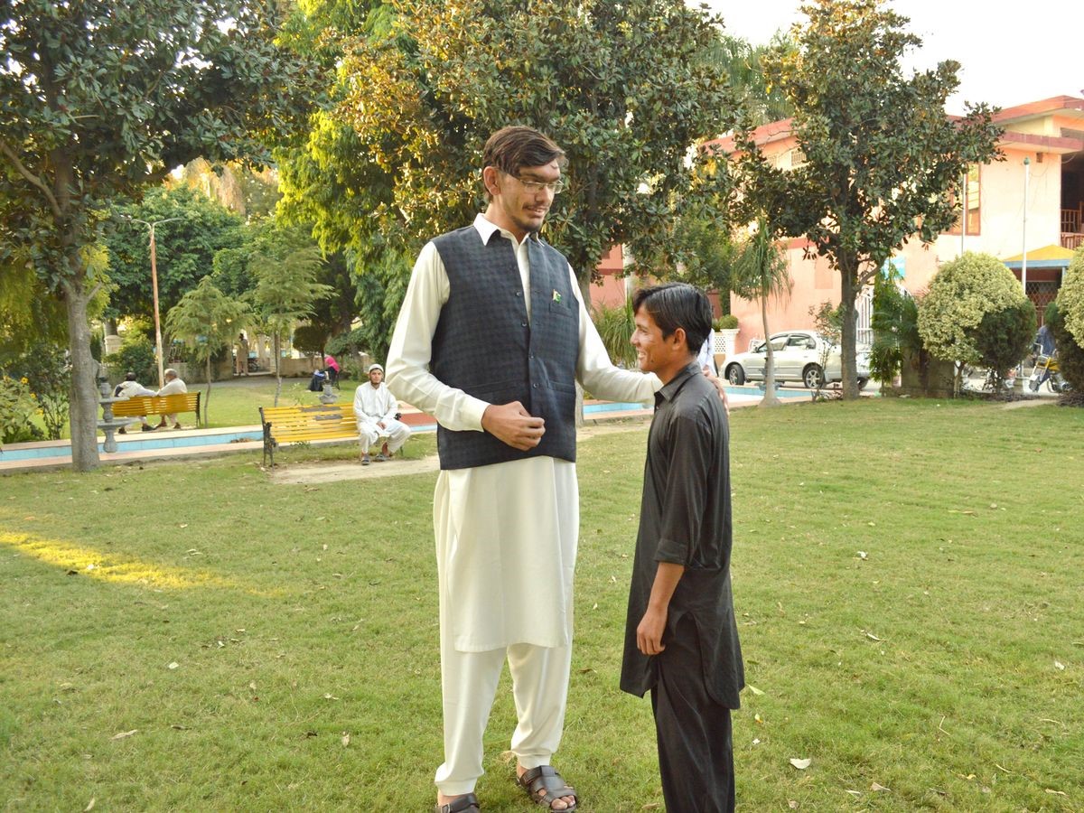 2 metra e 33 centimetra i gjatë dhe në moshën 23 vjeçare një pakistanez vazhdon ende të rritet. Vështirësia më e madhe e tij është në gjetjen e veshjeve ndërsa vajzat bëjnë garë për t’u martuar me të.