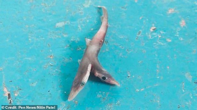 Nitin Patil po peshkonte në ujërat pranë Maharashtrës, në Indinë perëndimore, kur pa i tronditur peshkaqenin mutant me dy koka.