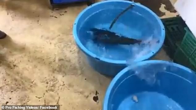 Videoja e realizuar në Japoni tregon peshkun që ngrihet në një temperaturë -21 gradë. Këta persona e marrin peshkun e ngrirë dhe e vendosin në një enë të madhe plastike që kishte ujë të nxehtë.