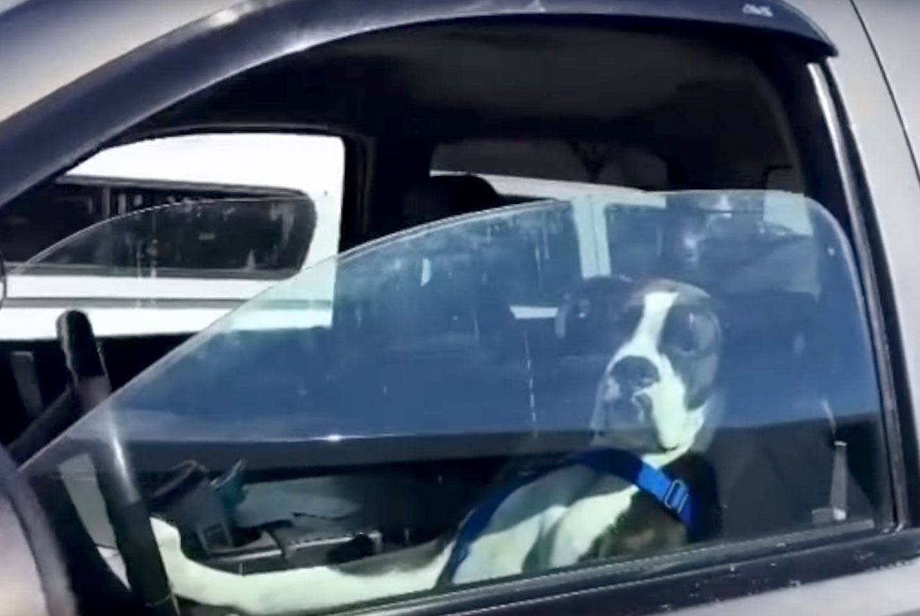 Një qen në Arizonë të Shteteve të Bashkuara të Amerikës shihet në këtë video duke i rënë borisë, pasi ishte mërzitur duke ndenjur brenda veturës.