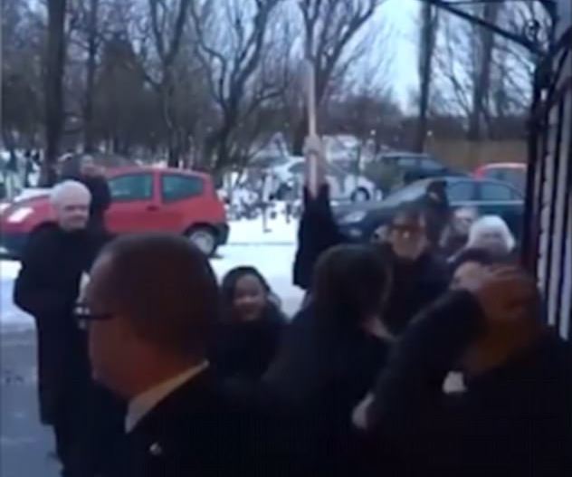 Kjo skenë është filmuar gjatë një funerali dhe nuk dihen shkaqet e rrahjes së këtyre personave.