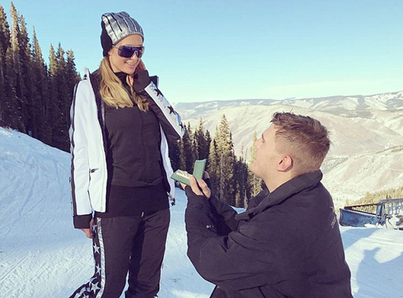 Biznesmenia 36-vjeçare fejesën e saj e konfirmoi me një fotografi të publikuar në Twitter, pasi aktori i kishte propozuar në një udhëtim në Aspen të Colorados.