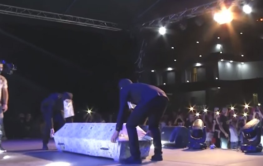 Mr. Rex u përkujdes për gjithë këtë performancë që la gojëhapur të gjithë të pranishmit, duke e sjellë Feron me një arkivol.