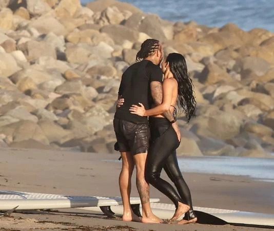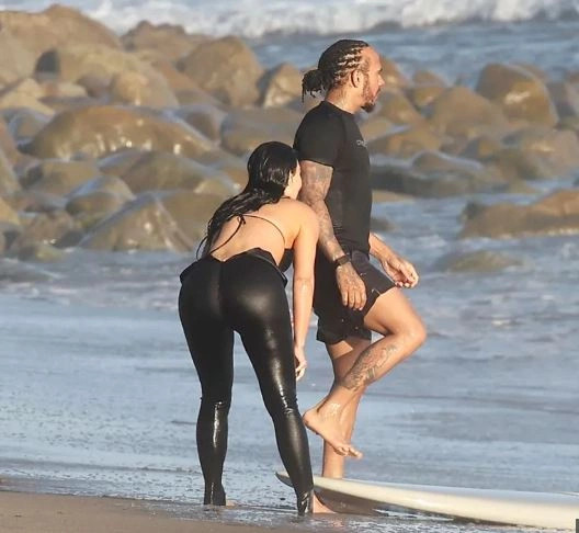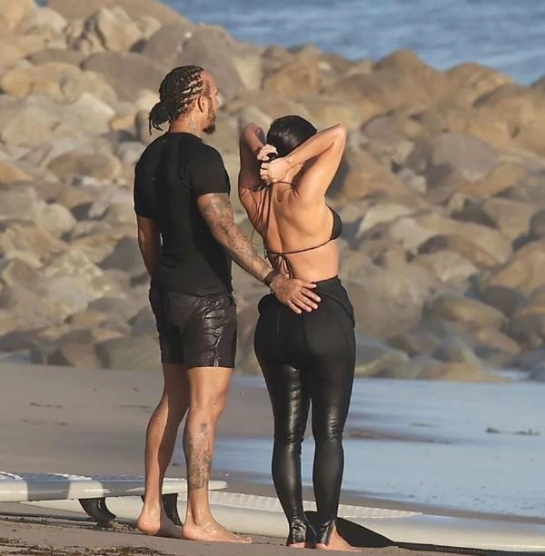 Gjatë këtij momenti sportiv, Kardashian provoi edhe surfin nën vëzhgimin e Hamiltonit, ndërsa të dy dukeshin shumë të rehatshëm në shoqërinë e njëri-tjetrit.