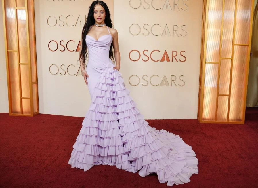 Ndërkohë, aktorja Chase Infiniti ka marrë pjesë për herë të parë në ceremoninë e “Oscarit” me një fustan në nuancë livando, në stil sirene me pala, gjithashtu nga brendi “Louis Vuitton”. Veshjen e plotësoi me qafore të ndritshme me gurë.