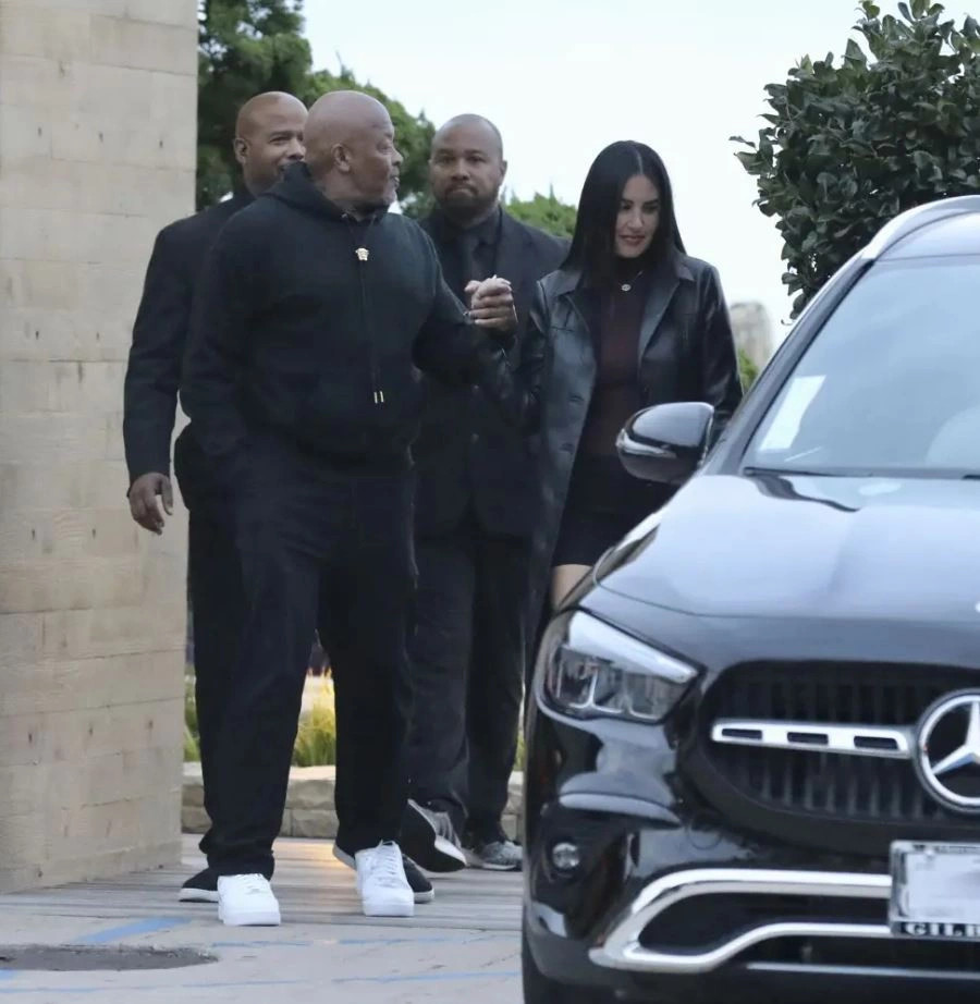 Saniei, 37 vjeç, dhe Dr. Dre, 61 vjeç, u panë duke dalë nga restoranti i njohur, të rrethuar nga sigurimi, përpara se të hipnin në veturë.