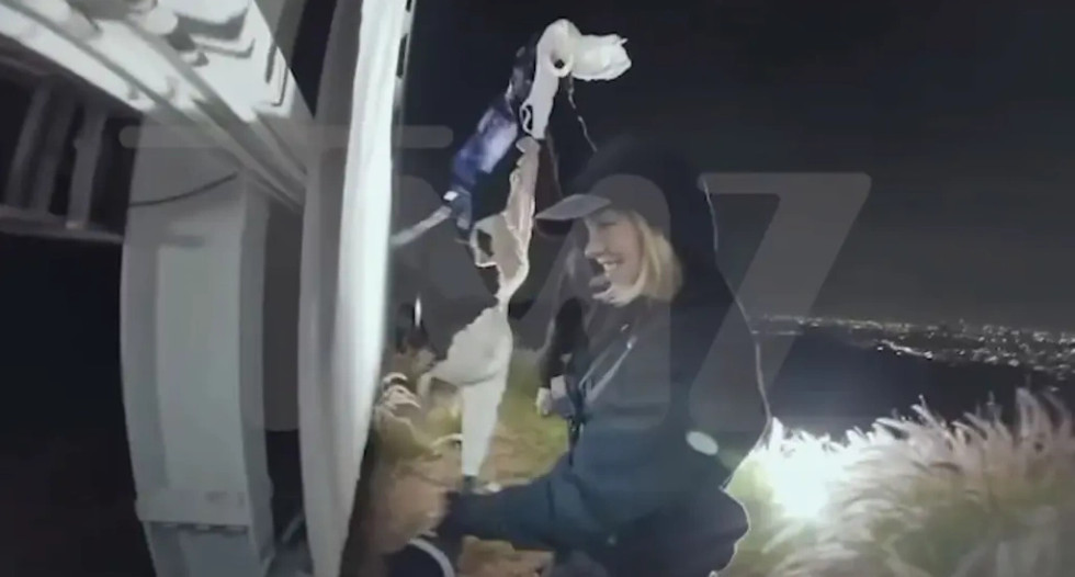 28-vjeçarja dhe bashkëpunëtorët e saj thuhet se janë ngjitur fshehurazi drejt monumentit të famshëm në Hollywood Hills, duke kaluar një gardh rreth tetë metra të lartë dhe duke u ngjitur në kodër me çanta të mbushura me të brendshme,  ka raportuar ABC News.