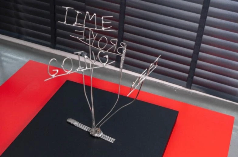DS: Ernst dhe Karoline e kanë parë punën time për herë të parë në “Manifesta 14” më 2022 në Prishtinë, megjithatë, nuk jemi takuar kurrë personalisht. Plani ka qenë që ata ta vizitojnë studion time në Prishtinë këtë verë, por koha i kishte planet e veta: Ernst ndërroi jetë vetëm pak javë para vizitës së tyre. Në atë moment, unë isha me pushime në jug të Shqipërisë. Nga një përzierje krenarie dhe naiviteti, hyra në det për not me një orë dore që e doja shumë. Deti atë ditë ishte i dhunshëm, dhe ora m’u shkëput nga kyçi. Katër ditë më vonë, e gjeta sërish, e thyer në copa, gjysmë e gërryer nga kripa. Ironia është se ajo ishte një orë për zhytje. Kjo rastësi më mbeti gjatë në mendje. Teksa Ernstit i ndaloi koha, unë u përballa me mekanizmin tim të thyer të kohës dhe fillova të reflektoj mbi sinqeritetin e vetë kohës, si ajo mund të jetë njëkohësisht lozonjare, mizore dhe indiferente. M’u kujtua filmi i shkurtër i Ahmed Imamoviqit, “10 Minutes” (2002), i cili vë përballë një pushim të shkurtër turistik në Romë me një jetë që shkatërrohet në Sarajevë, brenda të njëjtave dhjetë minuta. Nga ky reflektim lindi “Der Ernst, Der Zeit”, që është njëkohësisht një altar dhe një memorial. I kushtohet Ernstit, por edhe joseriozitetit (Nicht Ernsthaftigkeit) të vetë kohës, e cila na copëton, si dallgët e detit Jon, në fragmente kujtese dhe humbjeje. Një kujtesë se koha nuk na përket kurrë, ajo vetëm huazohet; se edhe një orë nuk mund ta masë atë, por vetëm ta tradhtojë; dhe se ajo që mbetet, në fund, nuk është ruajtja e orëve, por thyerja e tyre.