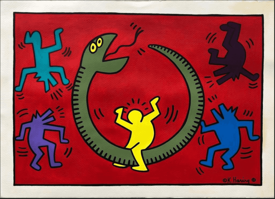 Ne mesin e tyre ishin dy piktura të bëra në stilin e motiveve nënshkruese të Haring, duke përfshirë qentë e tij që lehin dhe përbindëshin me tre sy, si dhe një vazo të veshur me imazhe të ngjashme që Pereda thoshte se ishin gjithashtu nga artisti.