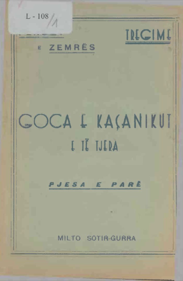 Novela “Goca e Kaçanikut” (që do të dalë këto ditë nga shtypi, prej shtëpisë botuese Bard Books) është marrë nga libri “Goca e Kaçanikut e të tjera” (botuar nga Ngrehina Typografike “Gurakuqi”, Tiranë, 1944), ku janë përfshirë edhe tregimet: “Dashurija e Matildës”, “Mbi Alltarin e Dashurisë” dhe “Nga Balli i Luftës”.
