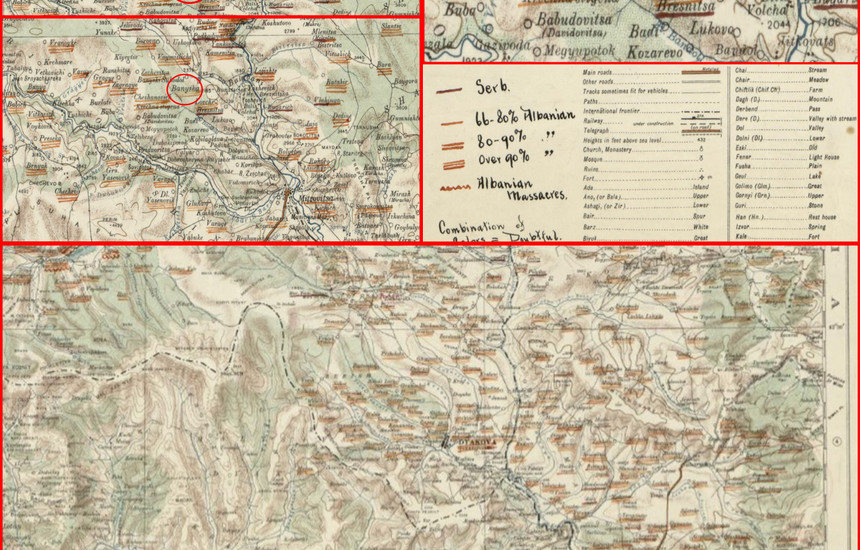 Në këtë dëshmi (hartë) që gjendet në Bibliotekën e Kongresit në Washington, evidentohet informacioni mbi demografinë e shumë pjesëve të banuara me shqiptarë në fillim të shekullit 20. Këto harta dhe dokumentet, janë një burim i rëndësishëm për ta kuptuar përbërjen etnike të fshatrave në atë periudhë. Sot, strukturat e popullsisë në shumicën e vendbanimeve që shohim në këto harta kanë ndryshuar, sidomos në pjesën veriore të Kosovës, që në atë kohë ishin të banuara me mbi nëntëdhjetë për qind shqiptarë, ndërsa tani pothuajse nuk ka asnjë shqiptar.