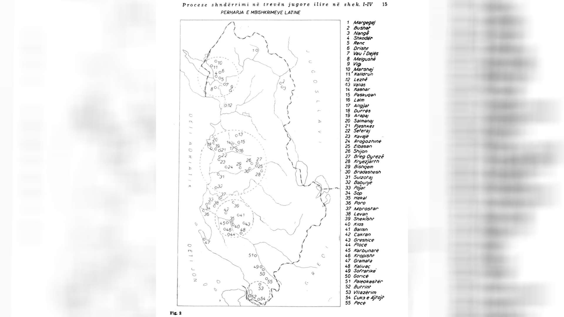 Për të njohur edhe më mirë procesin e shndërrimeve dhe përhapjen e kulturës romake që ndodhën në Ilirinë e Jugut në shekujt I-II dhe në gjysmën e parë të shekullit III, dhe për të përcaktuar karakterin e tyre dhe sa ato kanë prekur përbërjen etnike të popullsisë vendëse, janë me shumë vlerë mbishkrimet latine. Me përgatitjen për botim të përmbledhësit të mbishkrimeve latine të gjetura në Shqipëri, ne kemi në dorë një tablo të qartë të përhapjes së kufizuar të tyre, (shih hartën nr. 2). Edhe numri i tyre, gjithsej 250 mbishkrime, është tepër i vogël, po ta krahasojmë me 1676 mbishkrimet latine të gjetura vetëm në koloninë romake të Salonës, me 3.000 mbishkrimet e Dakisë, madje edhe 526 mbishkrimet latine të Dardanisë. Po t’i grupojmë sipas ndarjeve të vjetra krahinore, do të vërejmë se në Labiani ata gjenden në qytetin e Shkodrës dhe në rrethin e afërt të saj. Në verilindje ka dy mikrozona me mbishkrime latine, e para në Margegaj të Tropojës, në rrënojat e një prone të madhe tokësore me antroponimi latine, e dyta në zonën e Bicajt (Kukës), por edhe me antroponomi ilire.