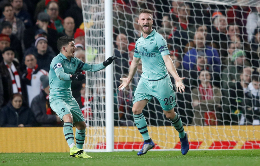 Mbrojtësi shqiptar i Arsenalit, Shkodran Mustafi, ka realizuar gol për skuadrën e tij në përballjen me Manchester Unitedin në xhiron e 15-të në Premier Ligë.