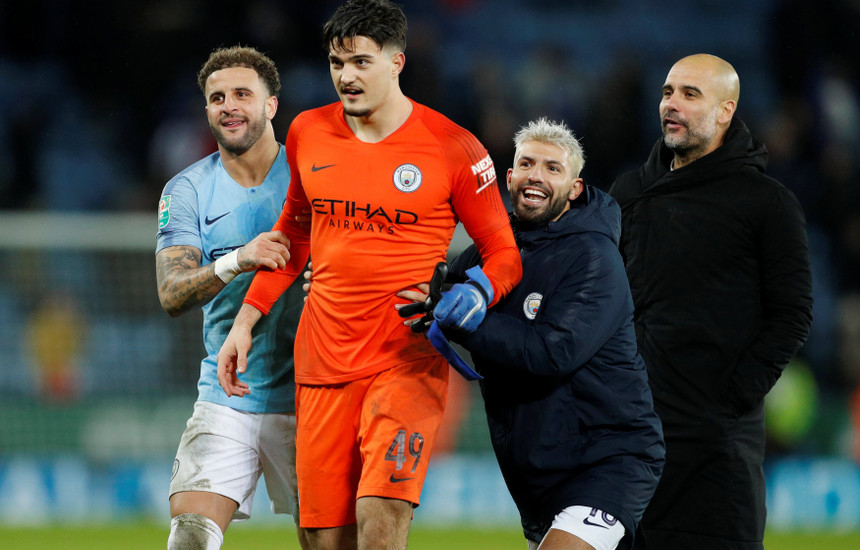 Koha e rregullt përfundoi 1 me 1 me golat e Kevin De Bruyne e Mark Albrighton ndërsa portieri gjigant u përkujdes që City të kalonte në raundin e ri të kupës pas penaltive të ekzekutuara.