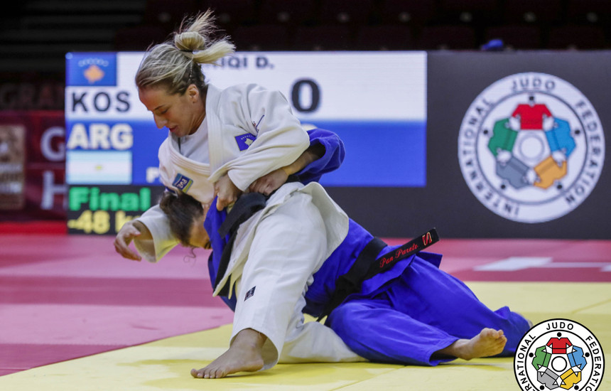 Federata Ndërkombëtare e Xhudos ka vlerësuar lart paraqitjen e Distria Krasniqit në ditën e parë të Grand Slamit në Budapest.
