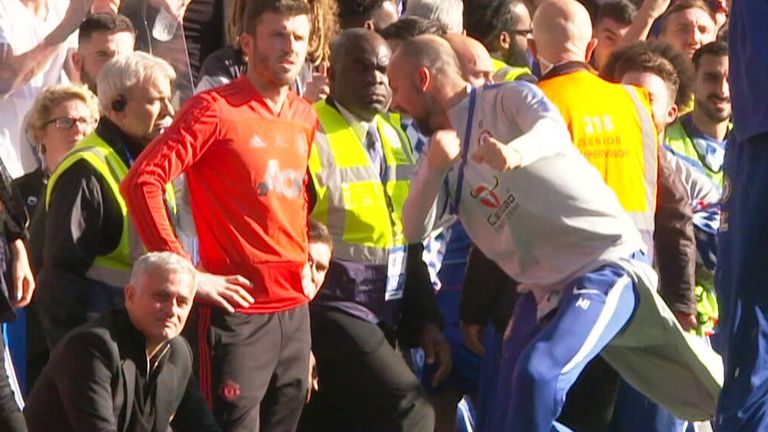 Marco Ianni festoi para portugezit që reagoi ashpër, duke ngjallë kacafytje mes bankave të Chelseat e Unitedit.