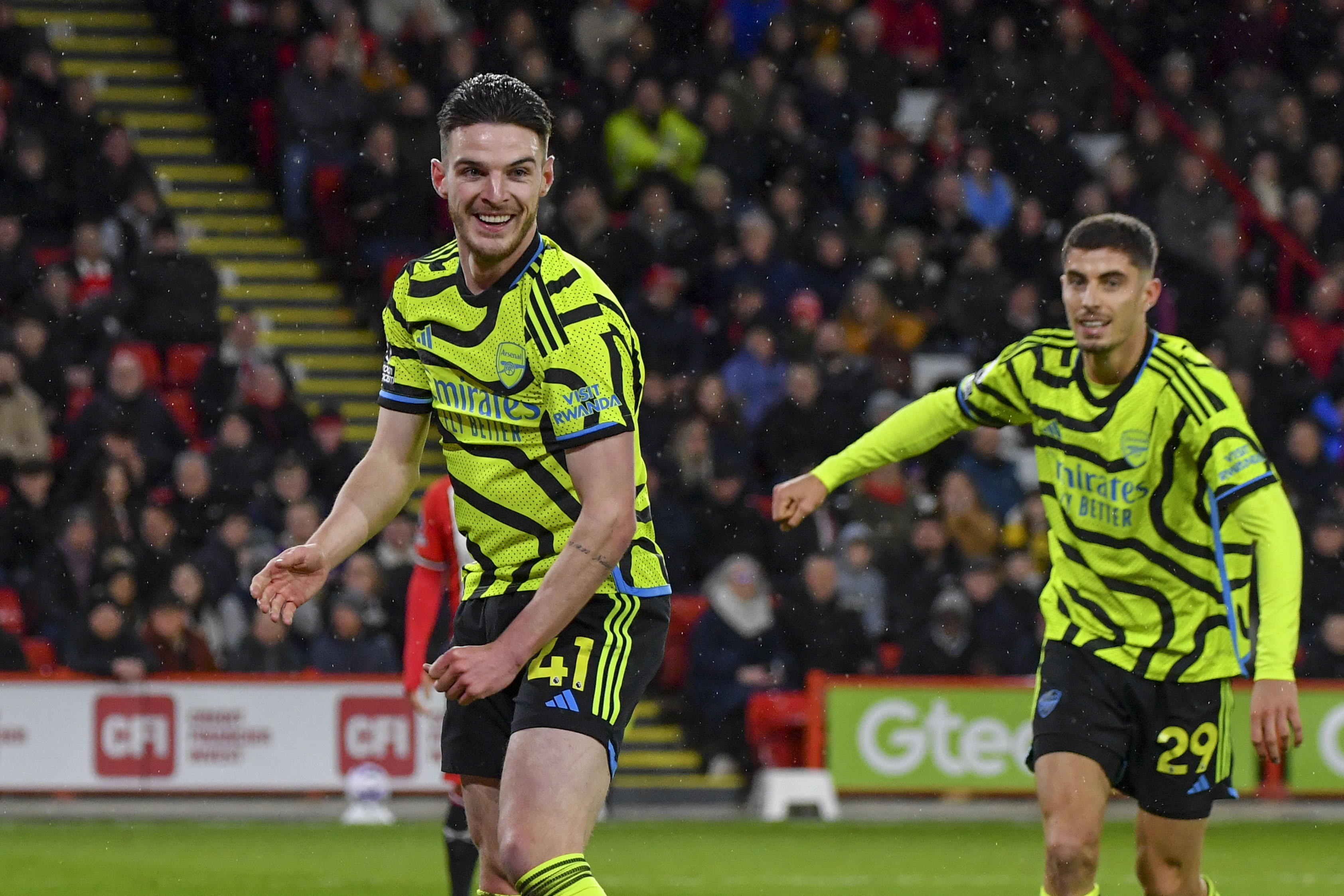 Në minutën e 25-të golin e katërt për Arsenalin e shënoi Kai Havertz, ndërsa Declan Rice e realizoi golin për 5:0 të pjesës së parë.